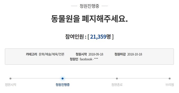 국민청원 게시판에는 퓨마 탈출 및 사살과 관련해 동물원 폐쇄를 요청하는 청원이 19일 오전 10시40분 기준 60여건 등록된 상태다. 동물원을 비롯해 수족관을 없애달라는 청원에서부터 "동물원의 동물들이 보호받도록 해달라", "퓨마 사살한 관계자를 처벌해달라", "퓨마 장례식을 치러달라", "동물원을 홀로그램으로 조성해라" 등의 청원이다.