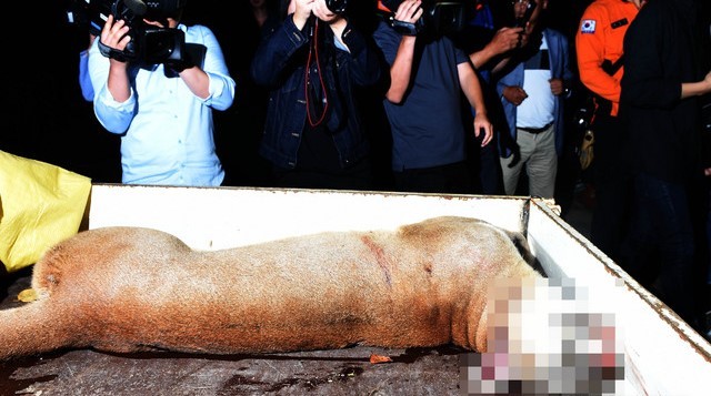 ▲ 18일 오후 대전 중구 대전 오월드 동물원에서 우리를 탈출한 퓨마가 사살된 뒤  동물병원으로 옮겨지고 있다. [뉴시스]