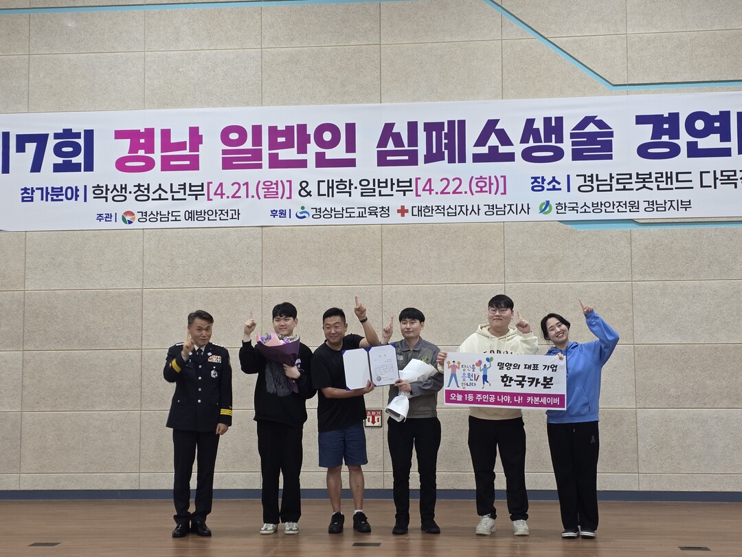 한국카본의 소방안전관리자 팀으로 구성된 일반부 '카본세이버' 팀은 기도 폐쇄로 인한 심정지 상황을 사실감 있게 연출하고, 숙련된 응급처치 기술을 선보이며 일반부 최우수상을 수상했다. 이 팀은 5월27일 세종시에서 열리는 전국 경연대회에 경남도 대표로 출전한다.