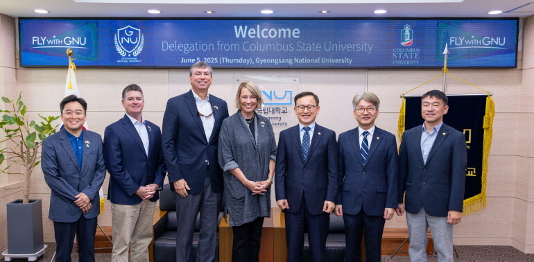 경상국립대학교(GNU)는 5일 오전 가좌캠퍼스에서 '해외 우수대학과 국제교류 네트워크 협력'이라는 주제로 미국 콜럼버스주립대(CSU) 총장 일행 환영행사를 열었다.