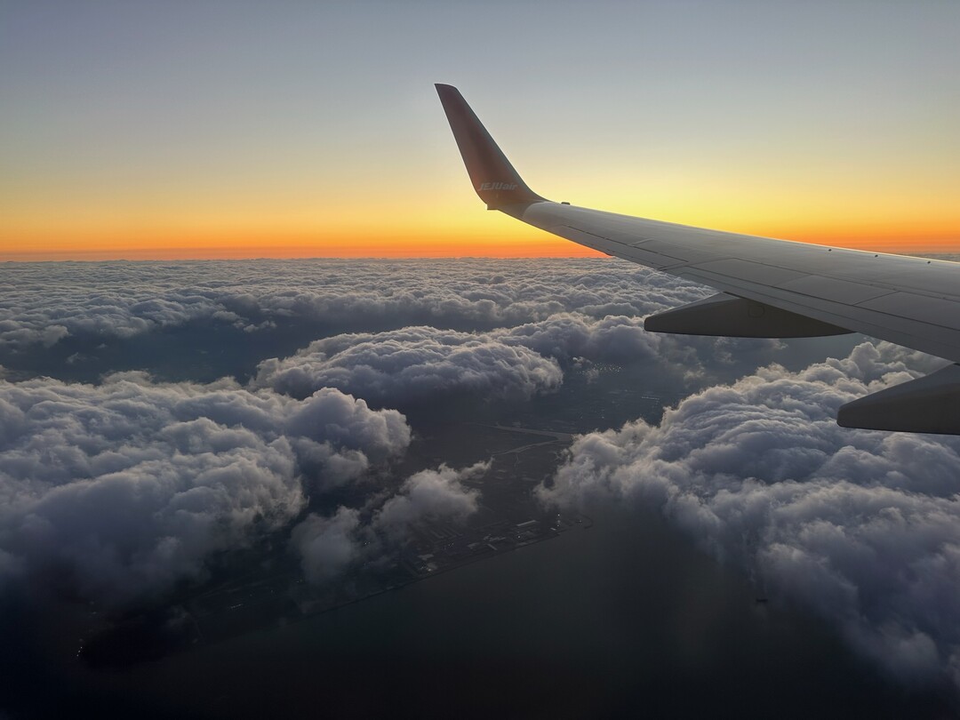 | ▲ 비행기 내부에서 촬영한 하늘 풍경. [하유진 기자] |
