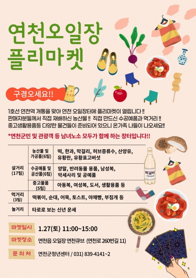전철1호선 개통 기념으로 오는 27일 오전 11시부터 오후 3시까지 연천군 연천읍에서 오일장이 열린다.