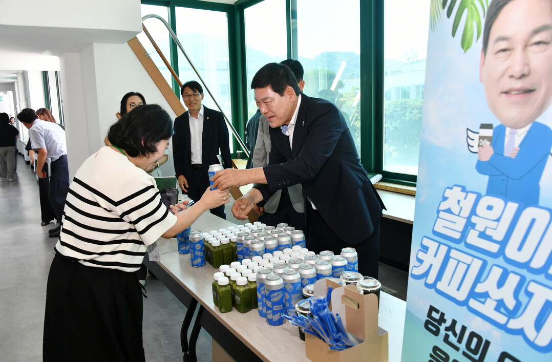 정철원 전남 담양군수가 공직자에게 시원한 음료를 직접 전달하며 극한 호우와 더위에 지친 직원을 격려하는 깜짝 이벤트를 마련했다.
