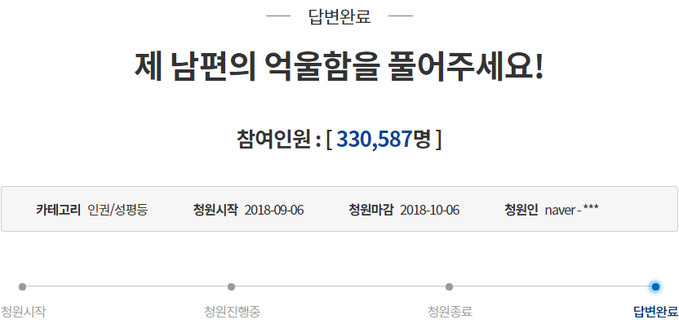 이에 대해 A 씨의 아내는 인터넷에 글을 올려 A 씨의 억울함을 주장했다. 이같은 사연은 청와대 국민청원 게시판에도 올라와 33만 명 이상의 동의를 받았다.