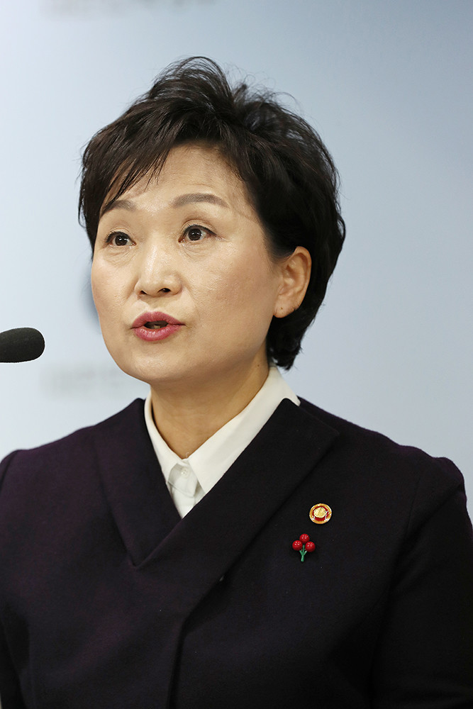 김현미 국토교통부 장관이 19일 오전 서울 종로구 정부서울청사에서 수도권 3기 신도시 입지와 2기 수도권 광역교통대책을 발표하고 있다.