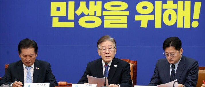 ▲ 더불어민주당 이재명 대표(가운데)가 1일 국회에서 열린 최고위원회의에서 발언하고 있다. [뉴시스]