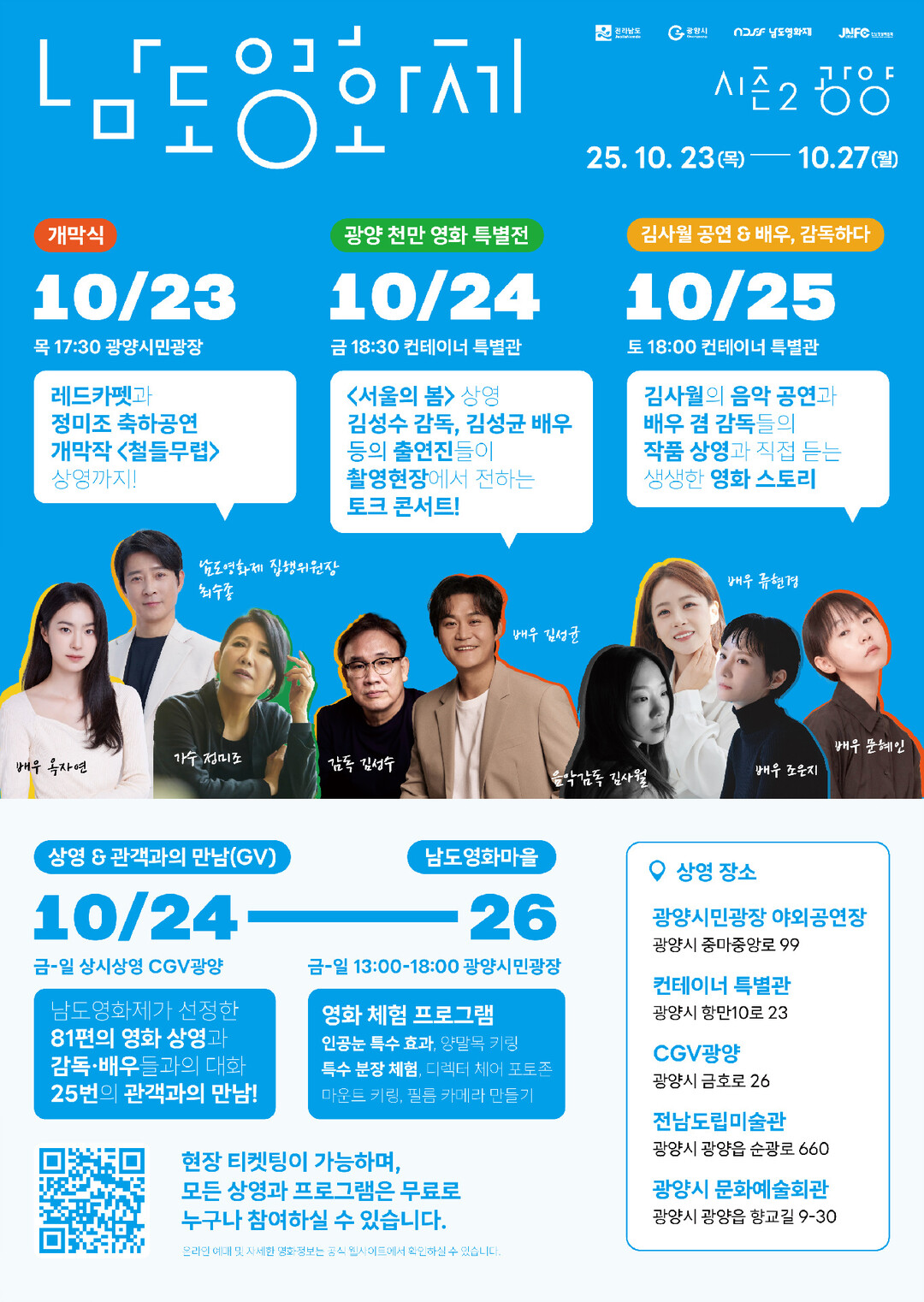 남도영화제는 오는 23일부터 닷새동안 CGV광양, 전남도립미술관, 광양시문화예술회관, 광양시민광장, 컨테이너 특별관 등 광양시 곳곳에서 열린다.
