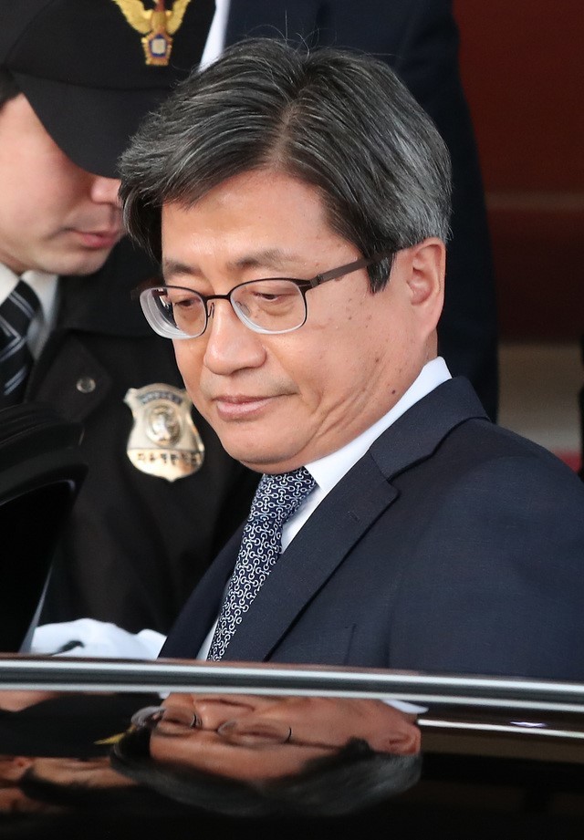 ▲ 검찰이 양승태 전 대법원장을 사법농단 관련 47개 혐의로 구속 기소한 11일 오후 김명수 대법원장이 서울 서초구 대법원에서 퇴근하고 있다. [뉴시스]