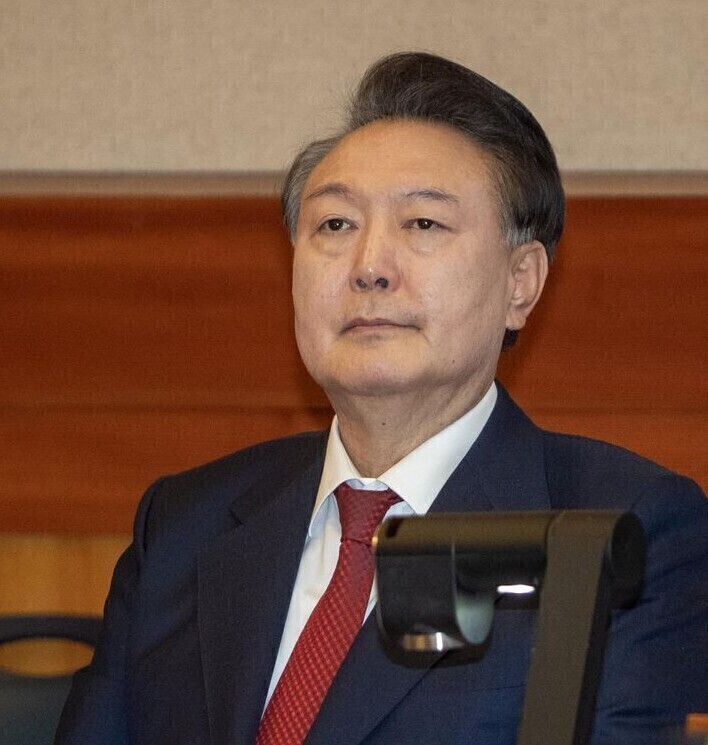 | ▲ 윤석열 대통령이 지난 2월 20일 서울 종로구 헌법재판소 대심판정에서 열린 탄핵심판 10차 변론기일에 출석해 생각에 잠겨 있다. [뉴시스] |