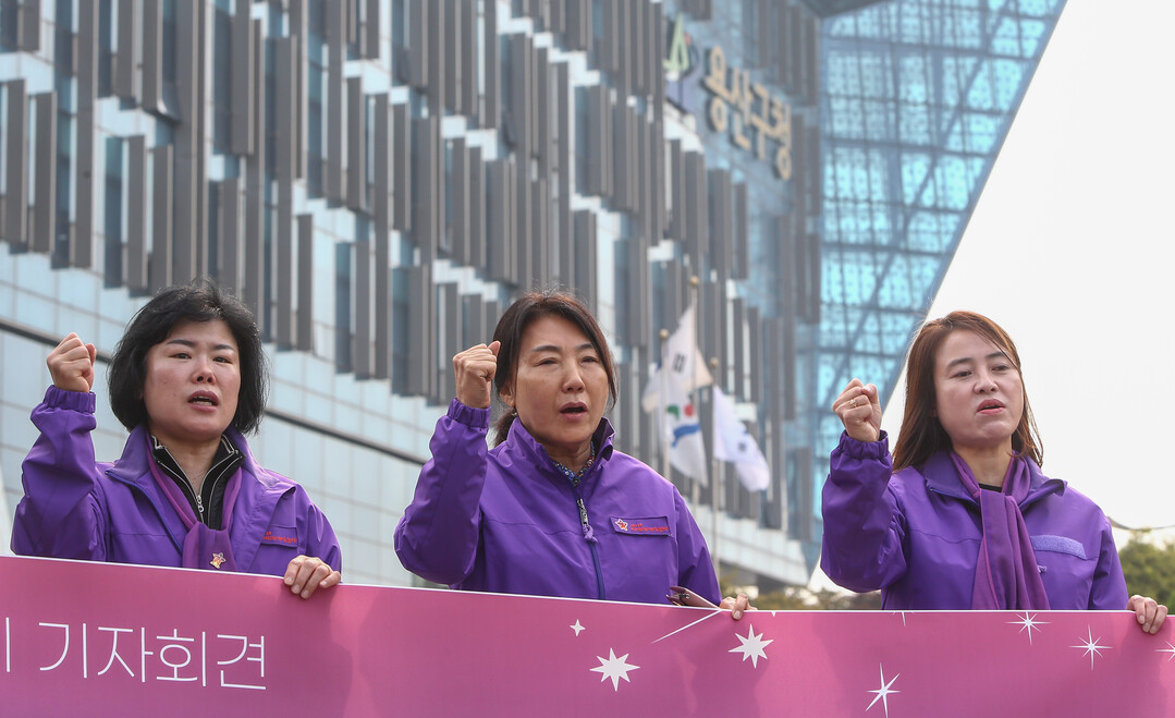| ▲ 10·29 이태원 참사 책임자 박희영 용산구청장 사퇴를 촉구하는 용산시민행동 회원들이 24일 오전 서울 용산구청 앞에서 기자회견을 열고 구호를 외치고 있다. [이상훈 선임기자] |