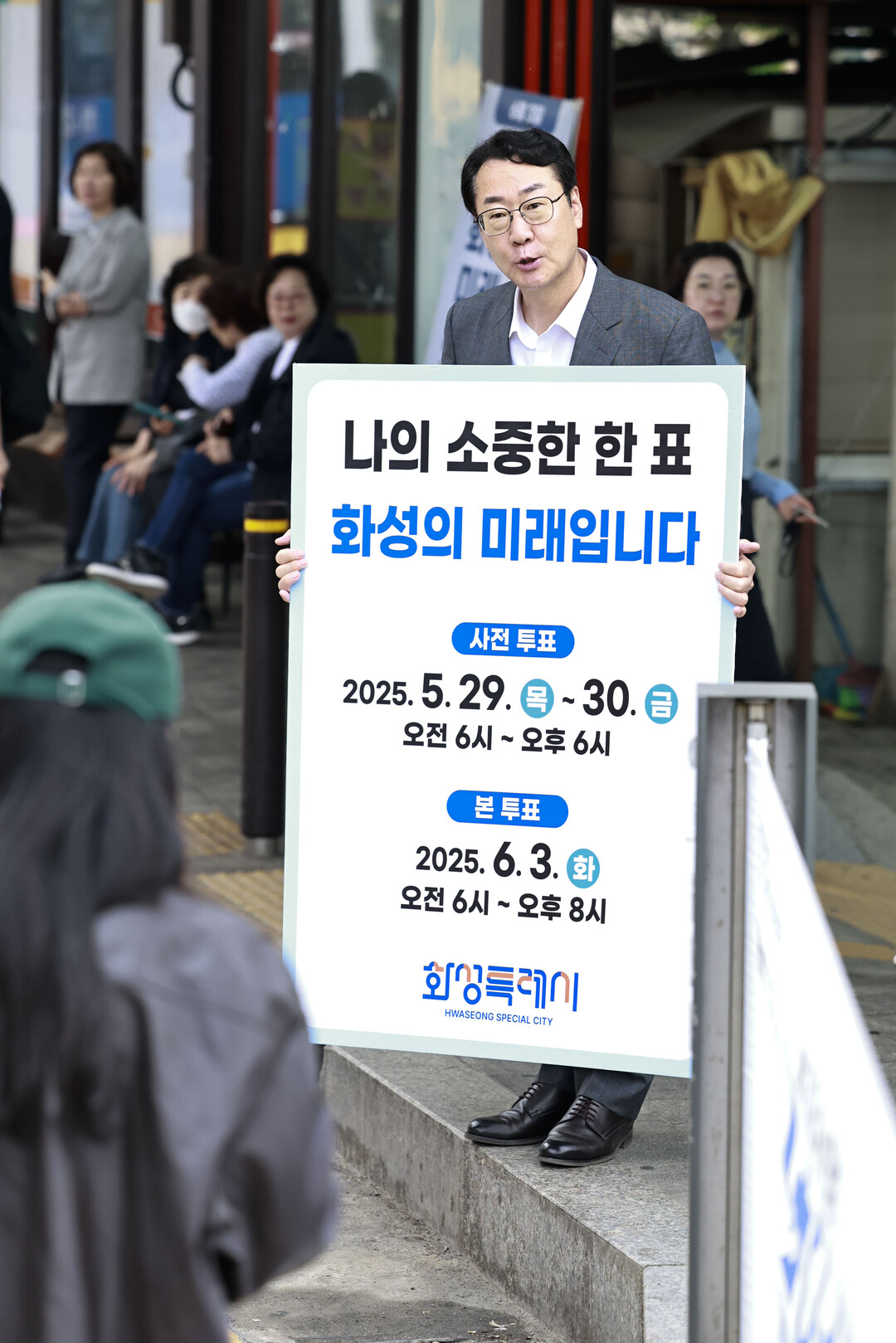 정명근 화성시장이 제21대 대통령선거를 앞두고 20일 병점역에서 시민들의 소중한 한 표 행사를 독려하기 위한 투표참여 캠페인을 실시했다.