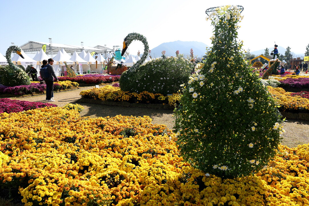 | ▲ 31일 강진만 춤추는 갈대축제 현장이 알록달록 국화로 물들었다. [강진군 제공] |