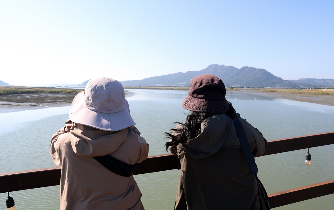 | ▲ 관광객들이 가을 정취를 즐기며 강진만을 바라보고 있다. [강진군 제공] |