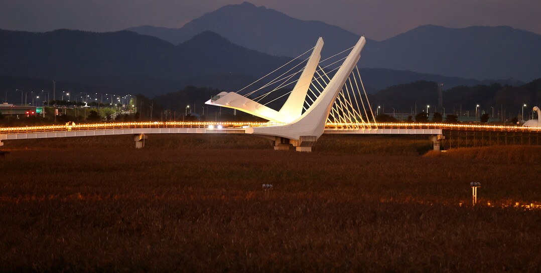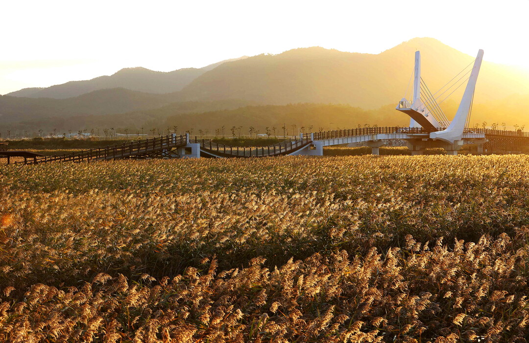 | ▲ 11월 2일까지 이어지는 '강진만 춤추는 갈대축제' 인근 갈대 밭이 노을빛으로 물들었다. [강진군 제공] |