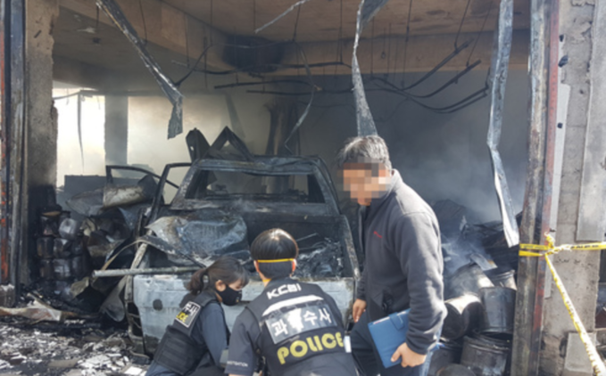 이날 불이 난 건물 내부에서 발견된 불탄 차량 운전석에서는 신원을 알 수 없는 시신 1구가 발견됐다. 경찰과 소방당국은 숨진 운전자 신원과 정확한 화재 원인 등을 파악하고 있다.