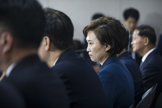 김현미 국토교통부 장관이 7일 오전 서울 종로구 정부서울청사에서 열린 '수도권 주택 30만호 공급방안 - 제3차 신규택지 추진계획' 발표 브리핑에 참석하고 있다.