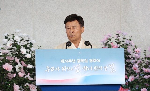 김 회장은 15일 오전 충남 천안 동남구 독립기념관 겨레의 집에서 열린 제74주년 광복절 경축식에서 기념사를 낭독했다.