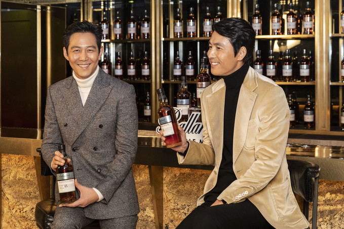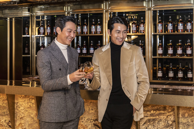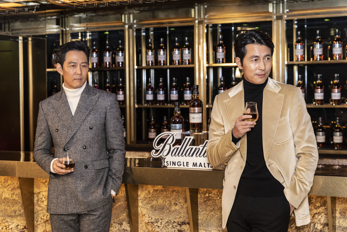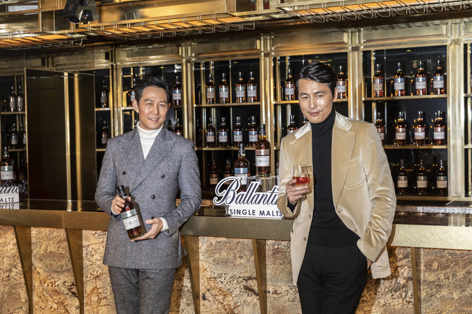 배우 이정재,정우성이 6일 오전 서울 용산구 이태원동 섹션 에이에서 진행된 프리미엄 스카치 위스키 브랜드 '발렌타인'의 싱글 몰트 캠페인 'Wanna meet a Single?'론칭 행사에 참석해 '발렌타인 싱글 몰트' 3종을 소개하고 있다.