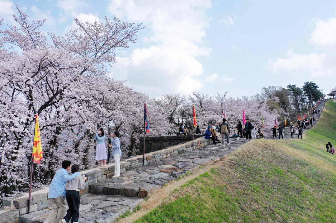 | ▲ 밀양읍성 벚꽃[밀양시 제공] |