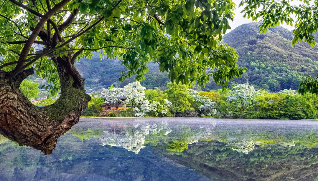 위양지의 이팝나무는 봄부터 초여름까지 즐길 수 있는 장관이다. 연못에 비치는 푸른 하늘과 완재정이 어우러져 완연한 봄 정취를 선사한다.