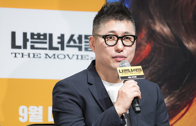 손용호 감독이 29일 오전 서울 강남구 압구정CGV에서 열린 영화 나쁜녀석들 : 더 무비 제작보고회에서 질문에 답하고 있다.