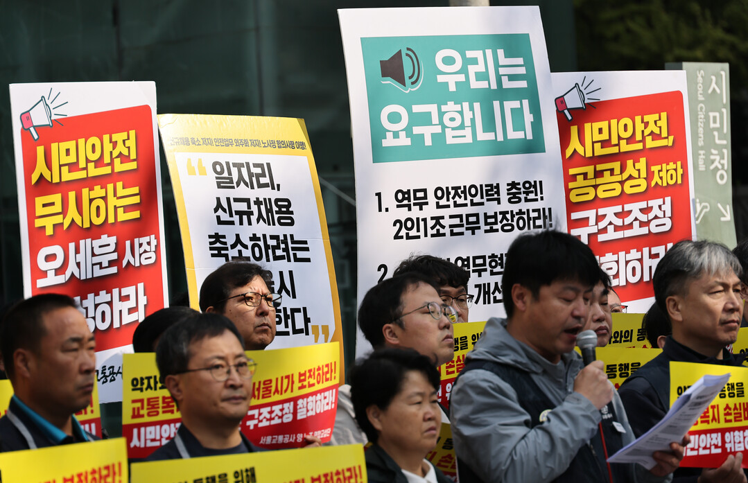 그러면서 "상시·지속·안전 업무를 외주화하는 것을 골자로 만들어진 인력 감축안은 결국 안전 위협과 시민 서비스 저하로 이어지는 것으로, 최근 서울시가 요금 인상으로 시민에게 부담을 전가한 것에 이어 안전과 서비스 저하까지 이중삼중 부담만 전가하는 것"이라고 주장했다.