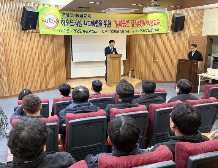 ▲ 5일, 상하수도시설 사고 예방을 위한 교육이 실시되고 있는 모습 [거창군 제공]