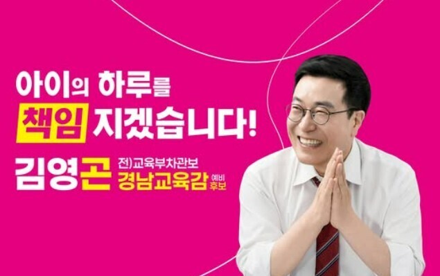김 예비후보는 24일 자신의 페이스북에 입장문을 게재, "이번 선거의 본질은 단순한 후보 단일화가 아니라, 학력 저하와 교권 추락으로 신음해 온 경남교육의 방향을 다시 세우는 것"이라며, '중도·보수 단일화 3대 원칙 로드맵' 이행을 촉구했다.