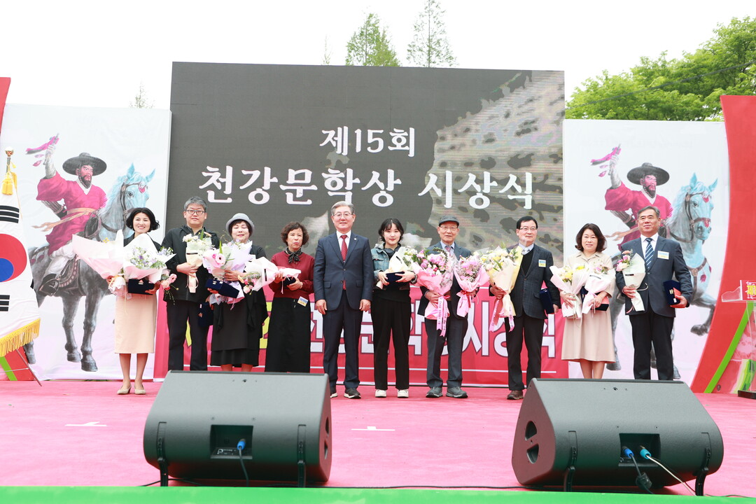 의령문인협회(회장 이광두) 주관으로 열린 시상식에는 15명의 수상자와 천강문학상 운영위원장 오태완 군수 등 많은 기관·사회단체장과 문학 애호가들이 참석했다.