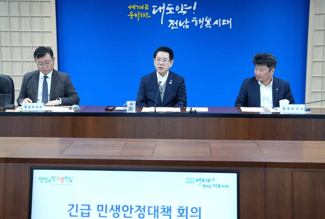 김영록 전라남도지사가 비상계엄과 탄핵소추안 가결에 따른 경제적 충격 완화를 위한 예비비 투입 등 민생 회복을 위한 대책 마련을 지시했다.