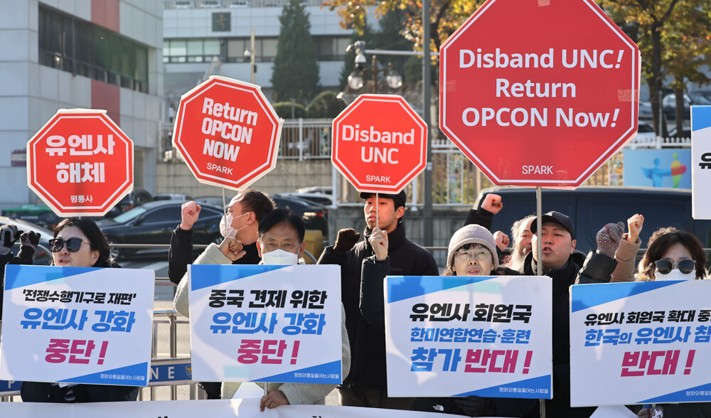기자회견 참가 시민단체들은 "'유엔사 재활성화'는 유엔군사령부를 새로운 전쟁 수행 기구로 만들어 한미연합사(미래연합사)에 대한 작전통제권을 행사하려는 미국의 의도가 담겨있는 것으로 한미연합군의 전략과 작전계획이 핵작전을 포함한 조건에서 미국은 더욱 더 한국군 미래연합사령관에게 작전통제권을 넘기려 하지 않을 것"이라고 주장했다.
