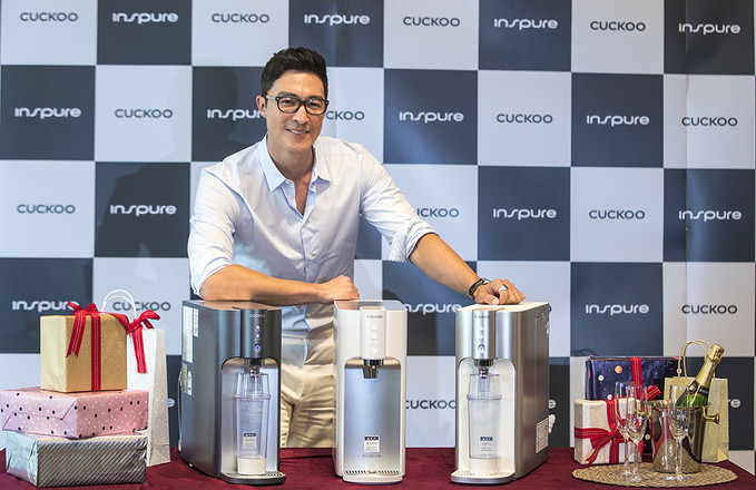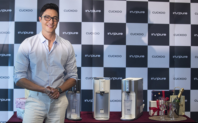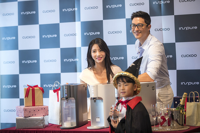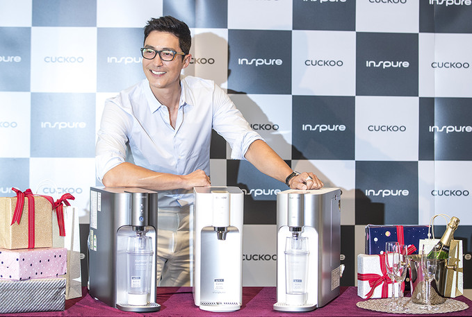 28일 오전 서울 중구 웨스틴조선호텔에서 열린 쿠쿠홈시스 인앤아웃 직수 정수기 10’S 공개 행사에서 배우 다니엘 헤니와 모델들이 포즈를 취하고 있다.