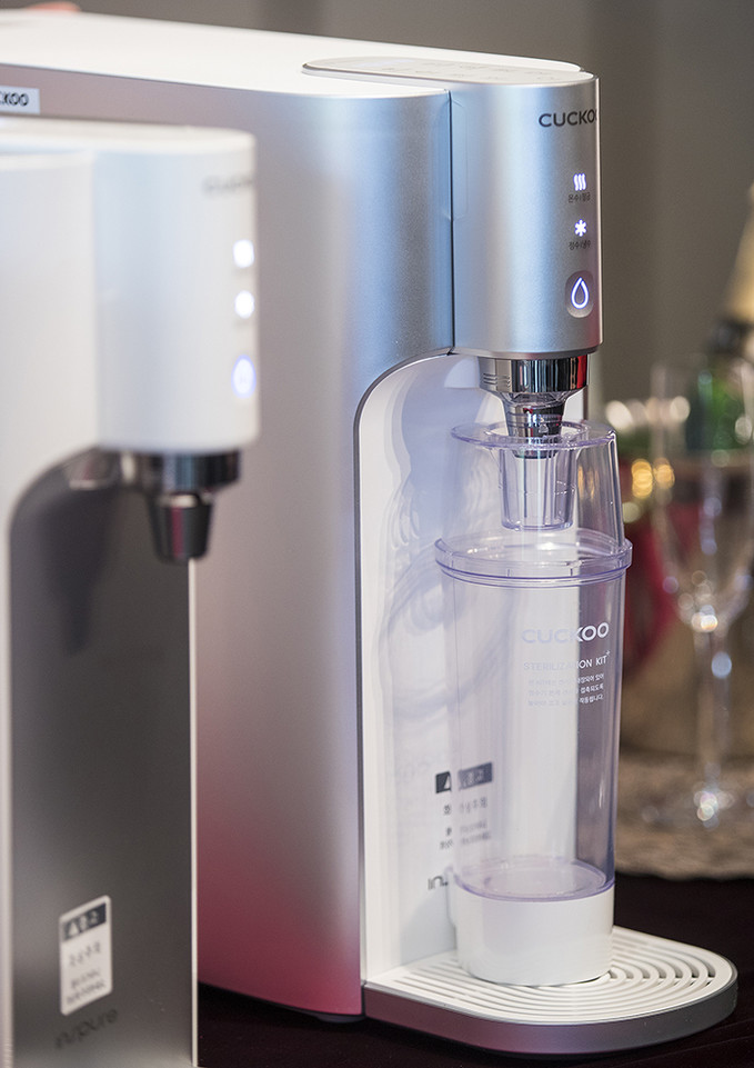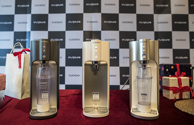 28일 오전 서울 중구 웨스틴조선호텔에서 열린 쿠쿠홈시스 인앤아웃 직수 정수기 10’S 공개 행사에서 제품들이 놓여있다.