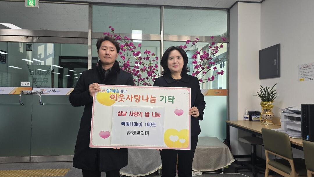 밀양시 상남면 행정복지센터는 22일 ㈜제일지대(대표 김이규)에서 설 명절을 맞아 백미 10㎏들이 100포(300만 원 상당)를 기탁했다고 밝혔다.