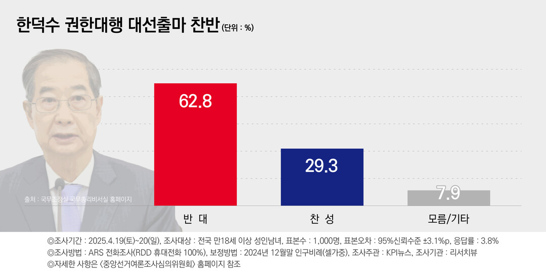한덕수 대선 출마 여부…반대 62.8% 찬성 29.3%