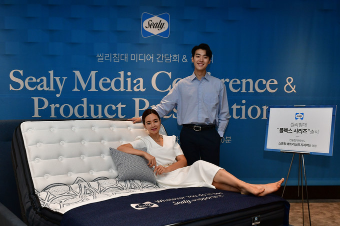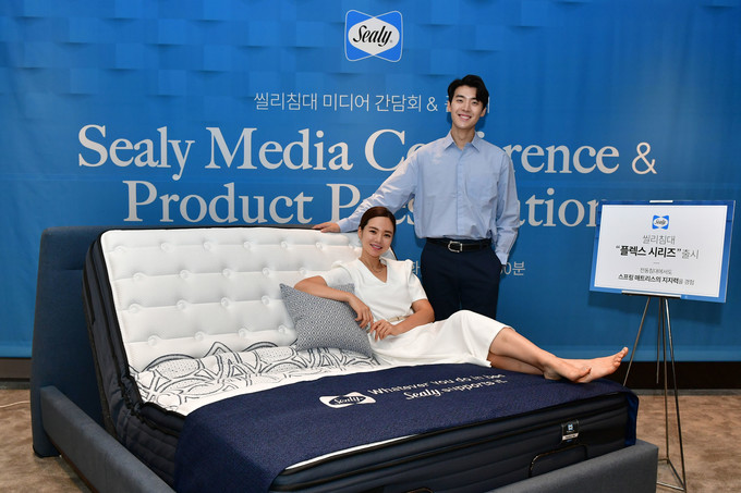 씰리코리아 '전동침대 플렉스 시리즈' 미디어 간담회가 13일 서울 중구 더플라자호텔에서 열린 가운데 모델들이 포즈를 취하고 있다.