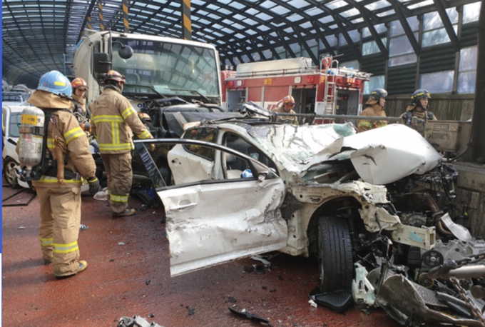 28일 오전 경기도 용인의 한 방음터널 구간에서 29중 추돌사고가 발생해 9명이 다쳤다.