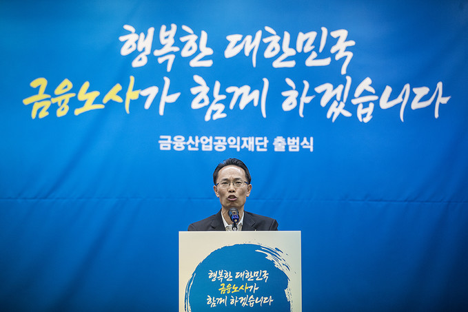 조대엽 금융산업공익재단 이사장이 4일 오전 서울 중구 은행회관에서 열린 금융산업공인재단 출범식에서 인사말을 하고 있다.