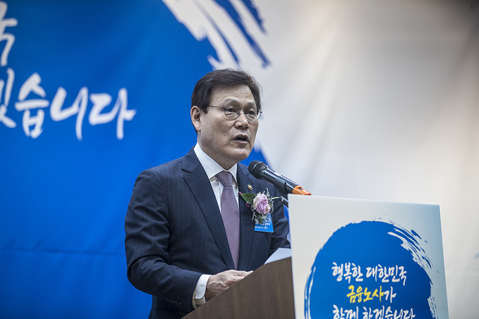 최종구 금융위원장이 4일 오전 서울 중구 은행회관에서 열린 금융산업공인재단 출범식에서 축사를 하고 있다.