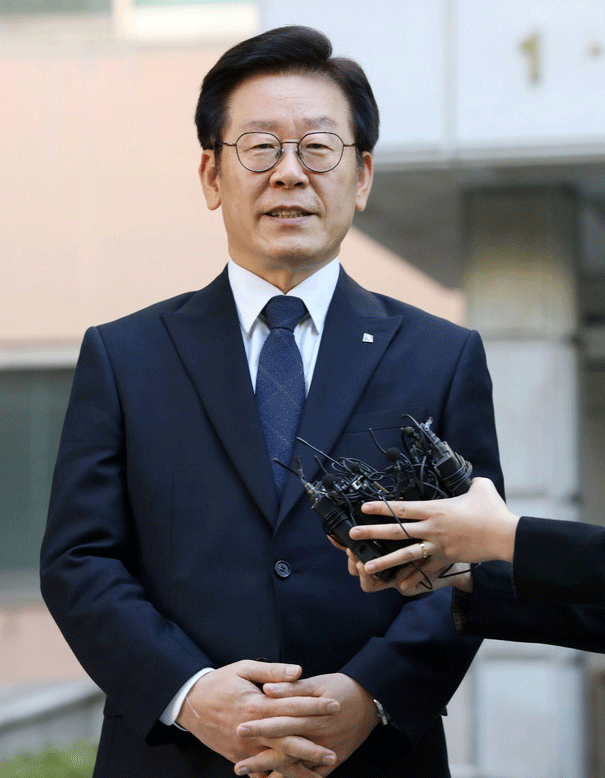 ▲ 경찰이 이재명 경기지사에 대한 공직선거법위반 고발사건 관련 주거지와 성남시청 등에 대한 압수수색을 한 12일 오전 경기 성남시 분당구 이 지사의 자택에서 이재명 지사가 일정을 위해 나서며 취재진의 질문에 답하고 있다. [뉴시스]
