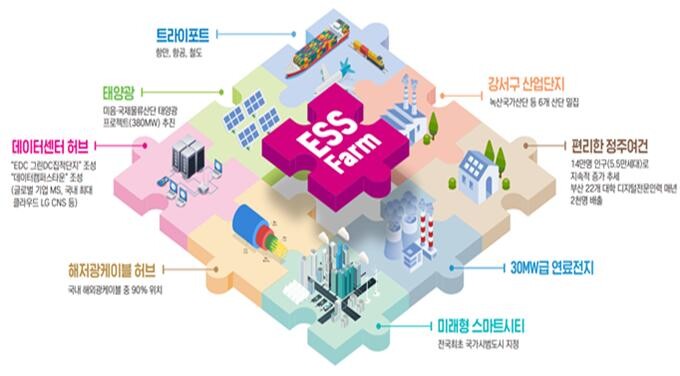'ESS 팜'을 통해 연간 최대 200억 원의 전기요금 절감과 전국 최대 ESS 설비를 통한 계통유연성 확보로 전력 공급망 안정성 확보에 이바지하게 된다고 부산시는 설명했다.