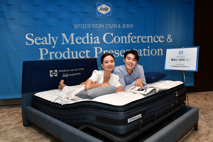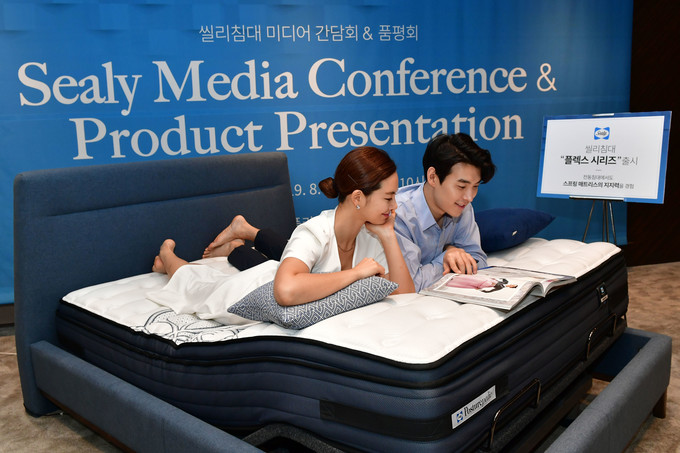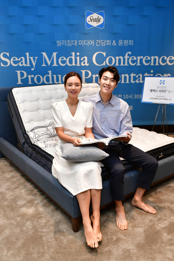 씰리코리아 '전동침대 플렉스 시리즈' 미디어 간담회가 13일 서울 중구 더플라자호텔에서 열린 가운데 모델들이 포즈를 취하고 있다.