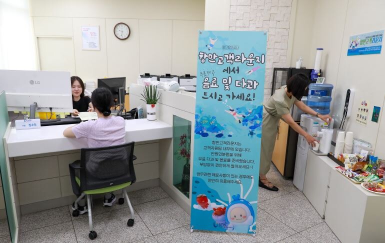9일 공사에 따르면 울산항 이용 고객은 물론 시민 누구나 항만고객라운지에 들러 생수 및 다양한 음료를 무료로 제공받으며 무더운 날씨 속에서도 쾌적하게 휴식시간을 가질 수 있다.