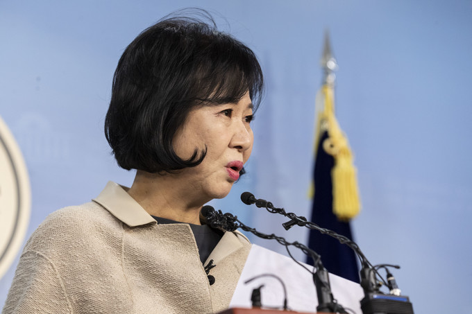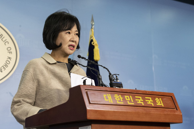 손혜원 더불어민주당 의원이 20일 오전 서울 여의도 국회 정론관에서 목포 부동산 투기 의혹과 관련한 기자회견을 하고 있다. 손의원은 '목포 문화재거리 투기' 의혹이 사실로 드러나면 의원직을 내려놓겠다고 말했다.