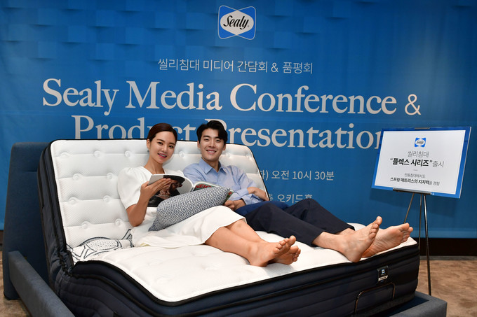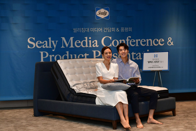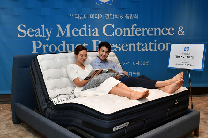 씰리코리아 '전동침대 플렉스 시리즈' 미디어 간담회가 13일 서울 중구 더플라자호텔에서 열린 가운데 모델들이 포즈를 취하고 있다.