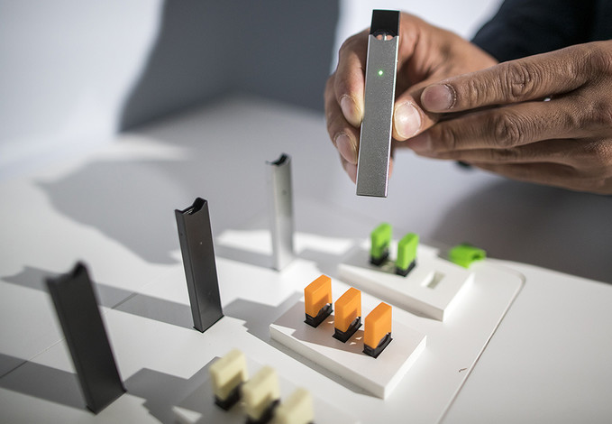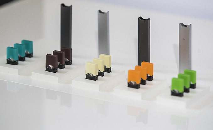 22일 오후 서울 성동구 어반소스에서 열린 쥴 랩스(JUUL Labs) 코리아 한국 진출 기자간담회에서 쥴 디바이스가 전시되어 있다.