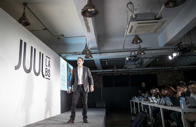 켄 비숍 쥴 랩스 APAC 국제성장 부문 부사장이 22일 오후 서울 성동구 어반소스에서 열린 쥴 랩스(JUUL Labs) 코리아 한국 진출 기자간담회에서 인사말을 하고 있다.