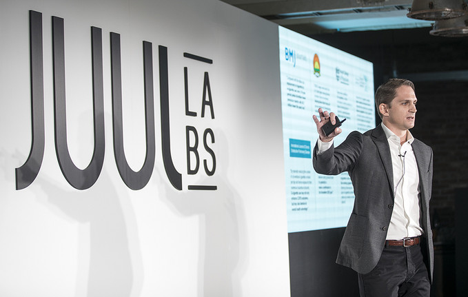 제임스 몬시스 쥴 랩스 설립자 겸 최고제품책임자가 22일 오후 서울 성동구 어반소스에서 열린 쥴 랩스(JUUL Labs) 코리아 한국 진출 기자간담회에서 질문에 답하고 있다.