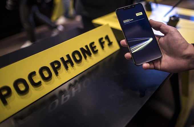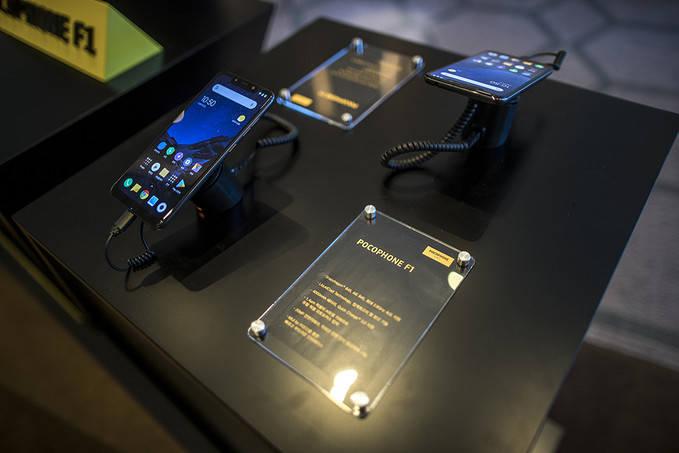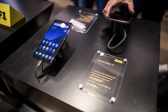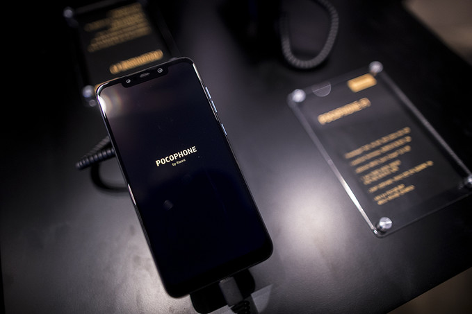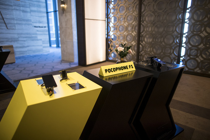 29일 오후 서울 강남구 그랜드 인터컨티넨탈 서울 파르나스 호텔에서 열린 ‘샤오미 포코폰F1(Xiaomi POCOPHONE F1)’ 한국 공식 론칭 기자간담회에 포코폰 F1이 전시되어 있다.
