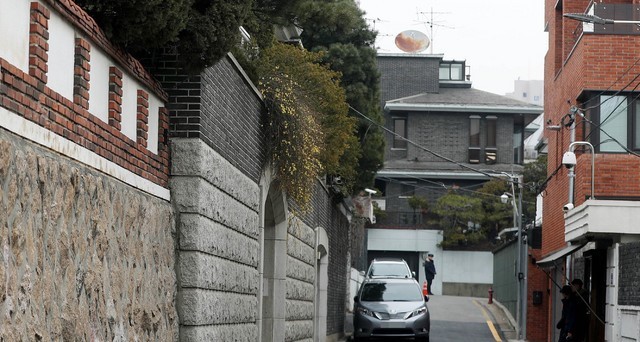 ▲ 전두환 전 대통령의 광주지방법원 재판 출석을 하루 앞둔 10일 오전 서울 서대문구 전 전 대통령 자택 앞에서 경찰 병력이 경비를 서고 있다. [뉴시스]